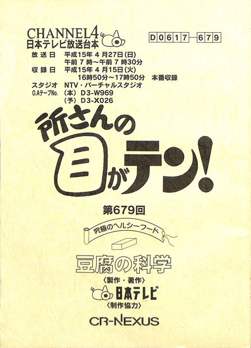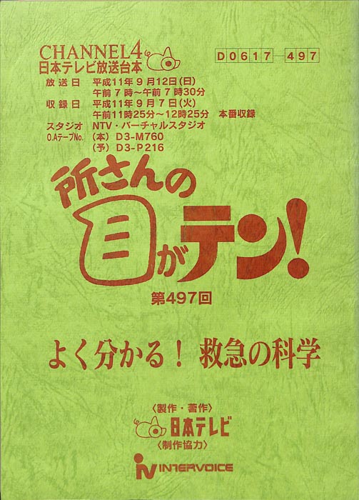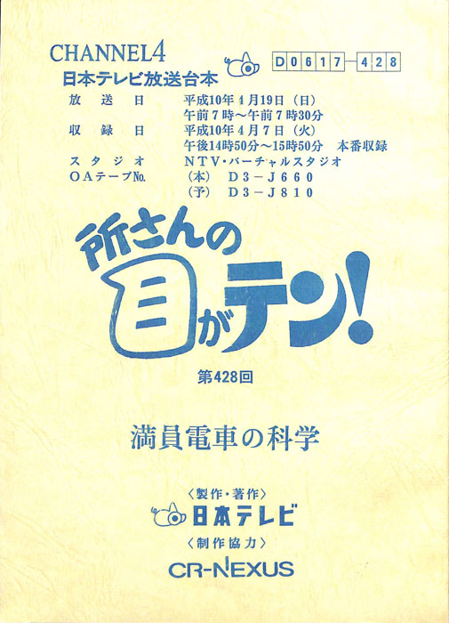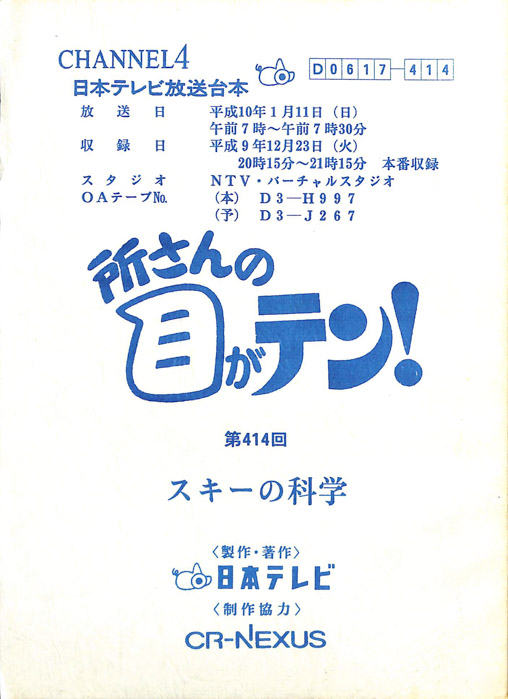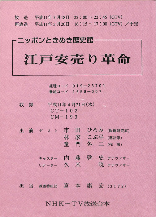主な出演 : (ゲスト)市田ひろみ,林家こぶ平,童門冬二,(キャスター)内藤啓史アナウンサー,(リポーター)久米暁アナウンサー