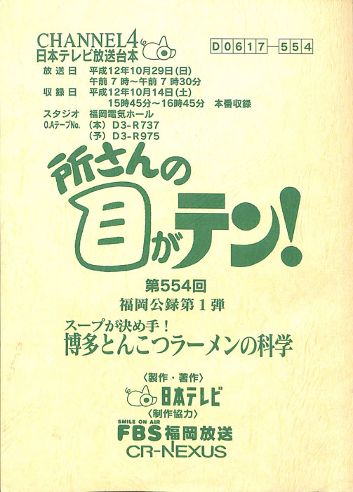 主な出演 : (ゲスト)尾車浩一,賀来千香子,永山久夫,(特別ゲスト)林家正雀,(キャスター)内藤啓史アナウンサー,(リポーター)久米暁アナウンサー