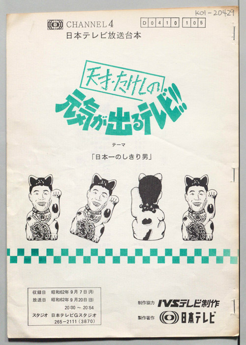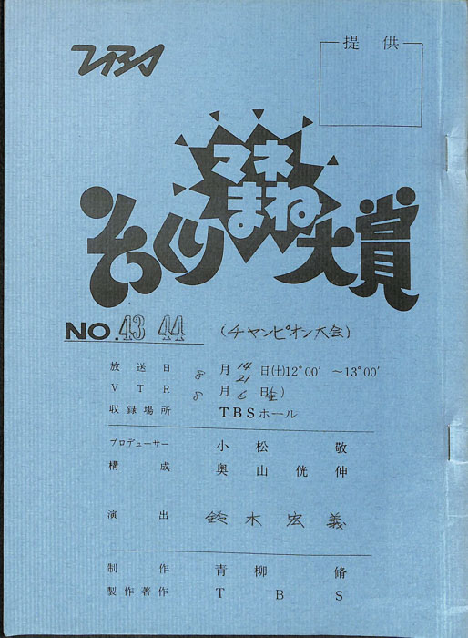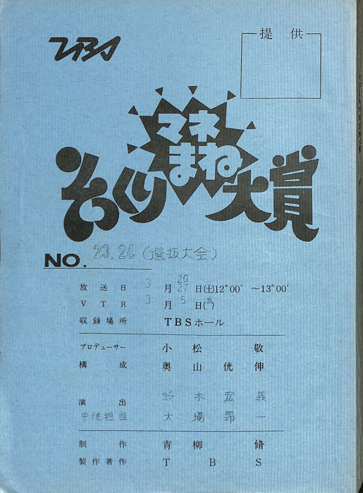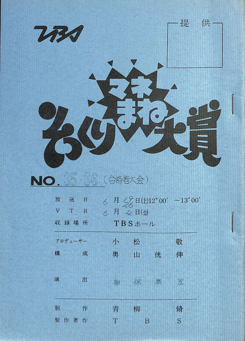 主な出演 : 沖田浩之,島田洋七,島田洋八,春やすこ,春けいこ,堤大二郎,五十嵐夕紀,(司会)みのもんた,(アシスタント)後藤いずみ,四谷美和