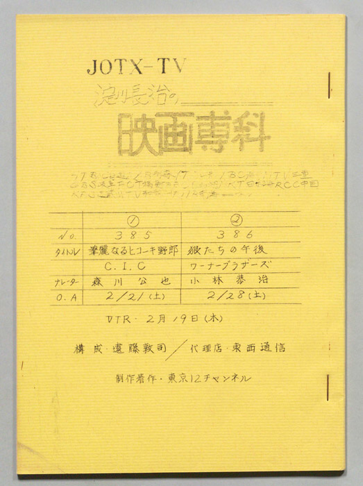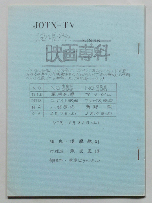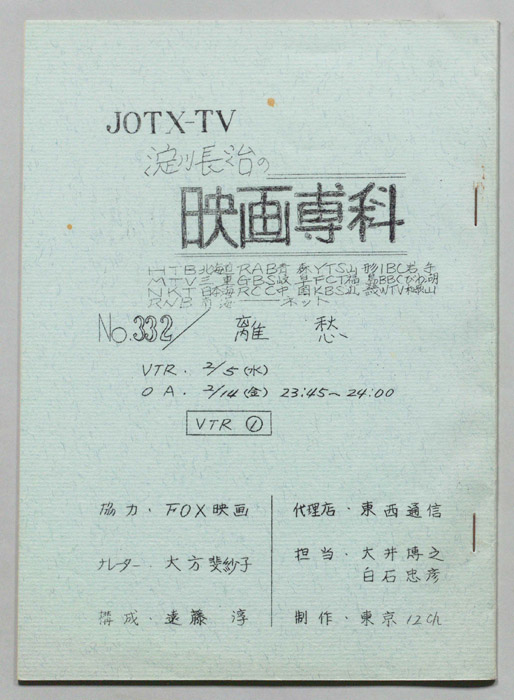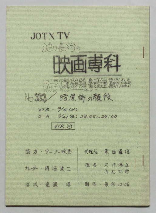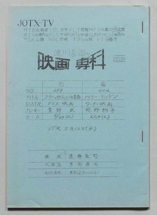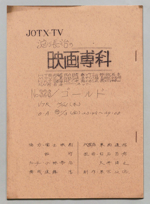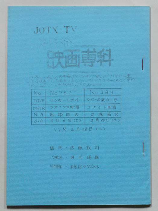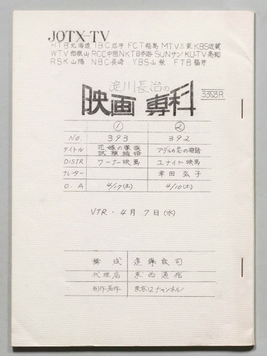 - 放送局 : 東京12チャンネル(テレビ東京)